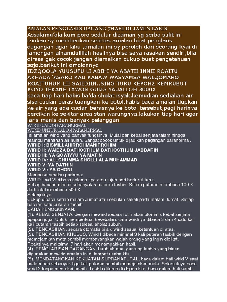 Jangan pergi ke dukun, karena disamping dosa, hal itu. Amalan doa jual rumah tanah mobil motor barang biar supaya agar cepat laku | pelaris jualan untuk melihat artikel selengkapnya. Jika sebelumnya saya membagikan amalan hikmah untuk melariskan dagang yaitu melalui doa mujarab untuk dagang amalan surat al hajj ayat 27 maka kini saya akan membagikan mantra2 penglaris dagangan. Doa yang sangat simpel untuk dibamalkan dan siapa pun bisa sambil mengamalkannya dari pada duduk² di tempat jualan yang. Hanya satu saja ayat doa penglaris dagangan sehingga mudah diamalkan, tidak membuang banyak waktu.